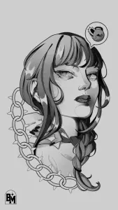 🎨 Je travaille principalement en noir et gris, avec parfois une petite touche de couleur (mais c’est rare 🌈).