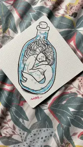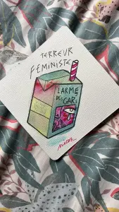 Mes inspirations sont: l'illustration jeunesse , le tatouage traditionnel américain , la BD indé et la culture DIY queer & transféministe .