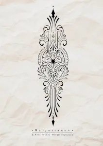 Marjorianne est très douce et à l'écoute, elle à réaliser le dessin devant moi tout en me questionnant sur mes goûts et envie. Hâte que son œuvre se retrouve sur ma peau.