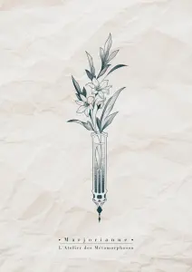 Je remercie infiniment Marjorianne d’avoir pris le temps d’être à mon écoute de mon projet et lui avoir donné la forme que je souhaitais, et la plus inattendue. Heureuse de ce projet :)