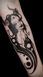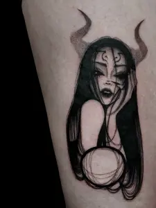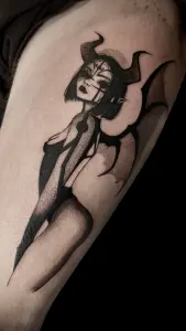 Tatoueuse absolument incroyable. J'ai voulu faire une succube avec mes propres idées et inspiré de ce qu'elle avait déjà tatoué. Elle a été de très bon conseils sur ce qui était possible ou non. Et le résultat est encore mieux que ce que j'avais imaginé 🥹Je voulais te remercier pour ta gentillesse, je me suis sentie très vite à l'aise même si ça ne s'est pas forcément vu et que je n'ai pas beaucoup parlé 😅