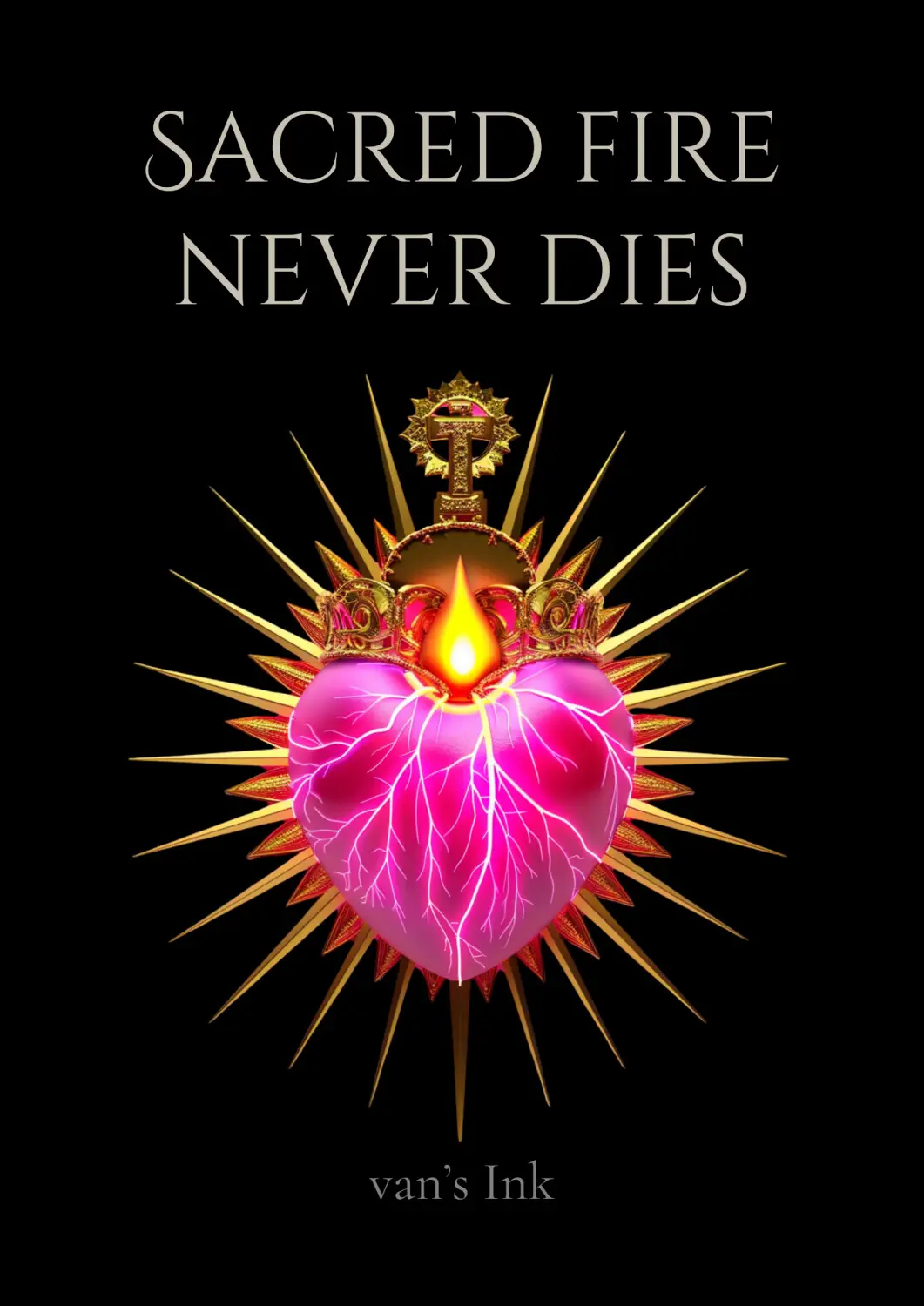 Sacred Fire Un cœur sacré entre foi, force et renaissance. Création originale Van’s Ink — print numérique haute définition, prêt à imprimer.