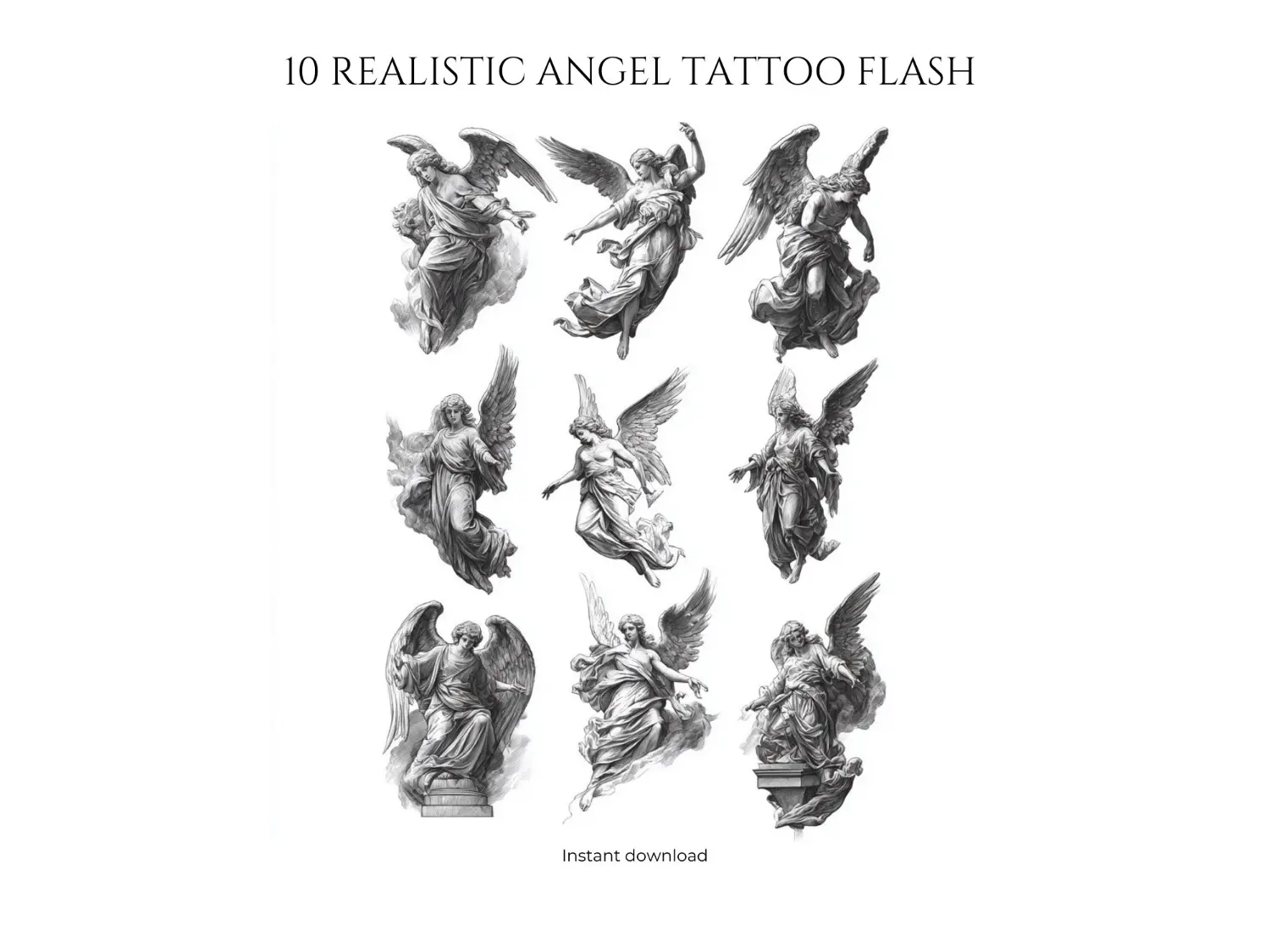 Une collection d’anges entre grâce sacrée et mystère sombre.