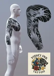 ViDiCi Ink Tattoo — Dragons énervés, démons moqueurs et carpes bodybuildées. Du japonais qui claque, du trait qui pique, et de l’encre avec du caractère. 🐉🔥 Ici, ça sent l’iode, le saké imaginaire et les légendes bien tatouées.